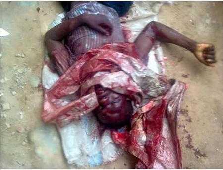 This is the lifeless body of a man allegedly butchered by ritualists and dumped on a major road in Abuja.